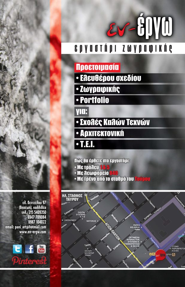 ΕΡΓΑΣΤΗΡΙΟ ΕΛΕΥΘΕΡΩΝ ΣΠΟΥΔΩΝ ΣΤΗΝ ΚΑΛΛΙΘΕΑ,ΕΡΓΑΣΤΗΡΙΟ ΚΑΛΩΝ ΤΕΧΝΩΝ ΣΤΗΝ ΚΑΛΛΙΘΕΑ,ΕΡΓΑΣΤΗΡΙΟ ΖΩΓΡΑΦΙΚΗΣ ΣΤΗΝ ΚΑΛΛΙΘΕΑ,ΣΕΜΙΝΑΡΙΑ ΖΩΓΡΑΦΙΚΗΣ ΣΤΗΝ ΚΑΛΛΙΘΕΑ ΚΑΙ ΤΟ ΝΟΜΟ ΑΤΤΙΚΗΣ,ΠΡΟΕΤΟΙΜΑΣΙΑ ΓΙΑ ΣΧΟΛΕΣ ΚΑΛΩΝ ΤΕΧΝΩΝ ΣΤΗΝ ΚΑΛΛΙΘΕΑ ΚΑΙ ΤΟ ΝΟΜΟ ΑΤΤΙΚΗΣ