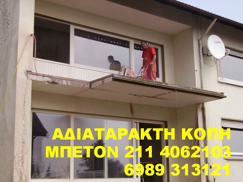 Αδιατάρακτη κοπή μπετον σε όλη την Ελλάδα, στις πιό ανταγωνιστικές τιμές της αγοράς ΤΗΛ-211 4062103 Η εταιρία ZAKO εισήγαγε τηνΑΔΙΑΤΑΡΑΚΤΗ ΚΟΠΗ σκυροδέματος. Μία σύγχρονη τεχνική στις κατεδαφίσεις, καθαιρέσεις και κοπές του μπετόν χωρίς θόρυβο και χωρίς σκόνη.Η ZAKO έχει πετύχει μια σταθερά ανοδική πορεία, αυξάνοντας καθημερινά τον όγκο εργασιών της. Παρέχει ολοκληρωμένες τεχνικές λύσεις, επιτυγχάνοντας ταυτόχρονα ταχύτατους ρυθμούς εκτέλεσης, στη πιο κοντινή σχέση κόστους και αποτελέσματος. Με εξειδίκευση και συνέπεια μπορεί και ανταγωνίζεται με σταθερή αξία τη σχετική με το είδος αγορά Η εταιρία μας είναι εξοπλισμένη με την τελευταία λέξη της τεχνολογίας, ενώ τα εξειδικευμένα εργαλεία που διαθέτουμε, καλύπτουν απόλυτα οποιαδήποτε ανάγκη στο χώρο ΑΔΙΑΤΑΡΑΚΤΗ ΚΟΠΗ ΜΠΕΤΟΝ, ΔΙΑΤΡΗΣΗ ΜΠΕΤΟΝ καθώς και ενισχύσεις κτηρίων. Η εταιρία μας είναι πρωτοπόρος εταιρία στο χώρο ΑΔΙΑΤΑΡΑΚΤΗ ΚΟΠΗ ΜΠΕΤΟΝ, ΔΙΑΤΡΗΣΗ ΜΠΕΤΟΝ. Οι υπηρεσίες μας - Στρογγυλές οπές για σωληνώσεις -Η εταιρία έχει την τεχνολογία καθώς και την τεχνογνωσία διάνοιξης οπών σε όλα τα δομικά υλικά. - Διανοίξεις σε κάθετες επιφάνειες για καινούριες πόρτες και παράθυρα Τετράγωνες οπές για ανελκυστήρες και κλιμακοστάσια Η εταιρία εξοπλισμένη με τα πλέον σύγχρονα μηχανήματα σε συνδυασμό με το έμπειρο προσωπικό έχει την δυνατότητα κοπής όλων των δομικών υλικώνσε οποιοδήποτε πάχος. Συρματοκοπή Ανθρακονήματα - Υαλοϋφάσματα Τσιμεντενέσεις - Ρητινενέσεις Κοπή τυφλού τμήματος οπλισμένου μπετόν Γενικευμένη χρήση μέσων αδιατάρακτης κοπής για την ελεγχομένη κατεδάφιση κτιρίων ή μέρους αυτών.Αναλαμβάνουμε σε όλη την Ελλάδα κάθε τεχνική εργασία και εξυπηρετούμε κάθε ανάγκη της Αδιατάρακτη Κοπη και Διάτριση μπετόν σε πολυκατοικίας, του διαμερίσματος σας ή του επαγγελματικού χώρου σας, οπως εργοστασια και παρκιν. Αποξήλωση των παλαιών (μεσοτοιχίες, κουζίνες, μπάνια, πόρτες & κουφώματα, δάπεδα / πατώματα, κλπ.) ΦΤΗΝΟΤΕΡΗ ΠΡΟΤΑΣΗ ΣΤΗΝ ΑΓΟΡΑ Οι δραστηριότητες μας δεν περιορίζονται στην Αττική όπου εδρεύει, αλλά επεκτείνονται σε όλη την Ελλάδα. Το γραφείο μας, σε οποιαδήποτε κλίμακα έργου, διαθέτει συνέπεια, ταχύτητα, ποιοτική εκτέλεσης εργασιών και χαμηλό κόστος.