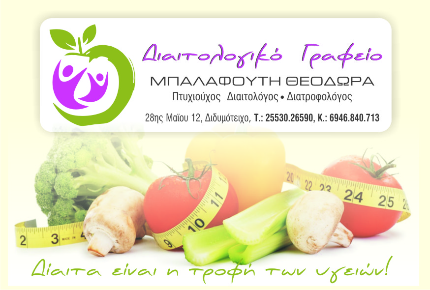 ΔΙΑΙΤΑ ΣΤΟ ΔΙΔΥΜΟΤΕΙΧΟ - ΔΙΑΤΡΟΦΗ ΣΤΟ ΔΙΔΥΜΟΤΕΙΧΟ - ΔΙΑΤΡΟΦΟΛΟΓΟΣ ΣΤΟ ΔΙΔΥΜΟΤΕΙΧΟ - ΠΑΙΔΙΚΗ ΔΙΑΤΡΟΦΗ ΣΤΟ ΔΙΔΥΜΟΤΕΙΧΟ - ΠΑΧΥΣΑΡΚΙΑ ΣΤΟ ΔΙΔΥΜΟΤΕΙΧΟ - ΒΟΥΛΙΜΙΑ ΣΤΟ ΔΙΔΥΜΟΤΕΙΧΟ - ΑΘΛΗΤΙΚΗ ΔΙΑΤΡΟΦΗ ΣΤΟ ΔΙΔΥΜΟΤΕΙΧΟ - ΚΛΙΝΙΚΟΣ ΔΙΑΙΤΟΛΟΓΟΣ ΣΤΟ ΔΙΔΥΜΟΤΕΙΧΟ - ΔΙΑΒΗΤΗΣ ΣΤΟ ΔΙΔΥΜΟΤΕΙΧΟ -
